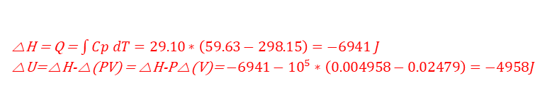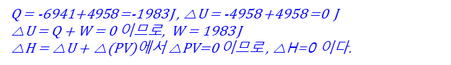 - 두 문제는 모두 최종 온도가 변하지 않기 때문에, 위에서 언급한 온도의 함수인 내부에너지와 엔탈피는 최종 상태에서 △U=△H=0 임을 검증할 수 있습니다.
