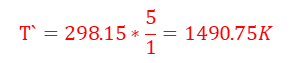먼저, 가열 후 중간 온도 인 T`을 위와 마찬가지인 상태방정식으로 구할 수 있습니다. 중간 온도 T`=𝑇1∗(𝑃2`)/𝑃1로 계산할 수 있습니다.