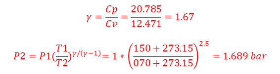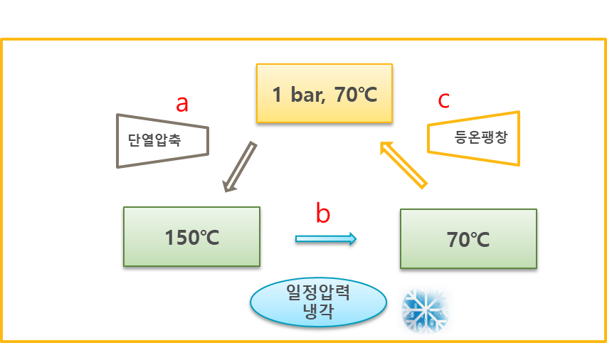 (a) 70℃, 1 bar의 초기 상태에서 150 ℃까지 단열 압축된다.