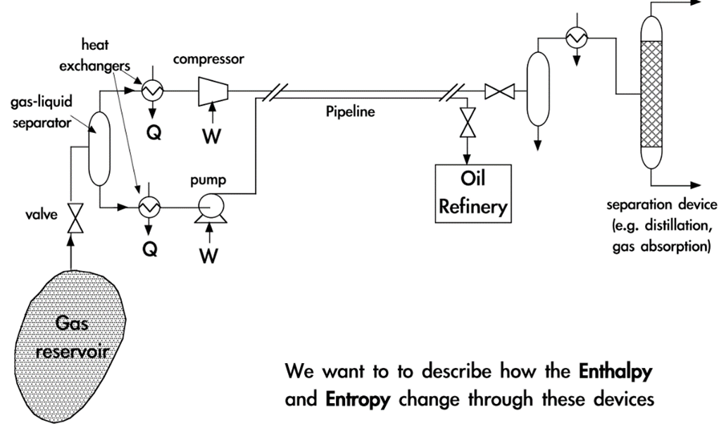 흐름 공정 내 열역학에서의 엔탈피(H)와 엔트로피(S) 변화를