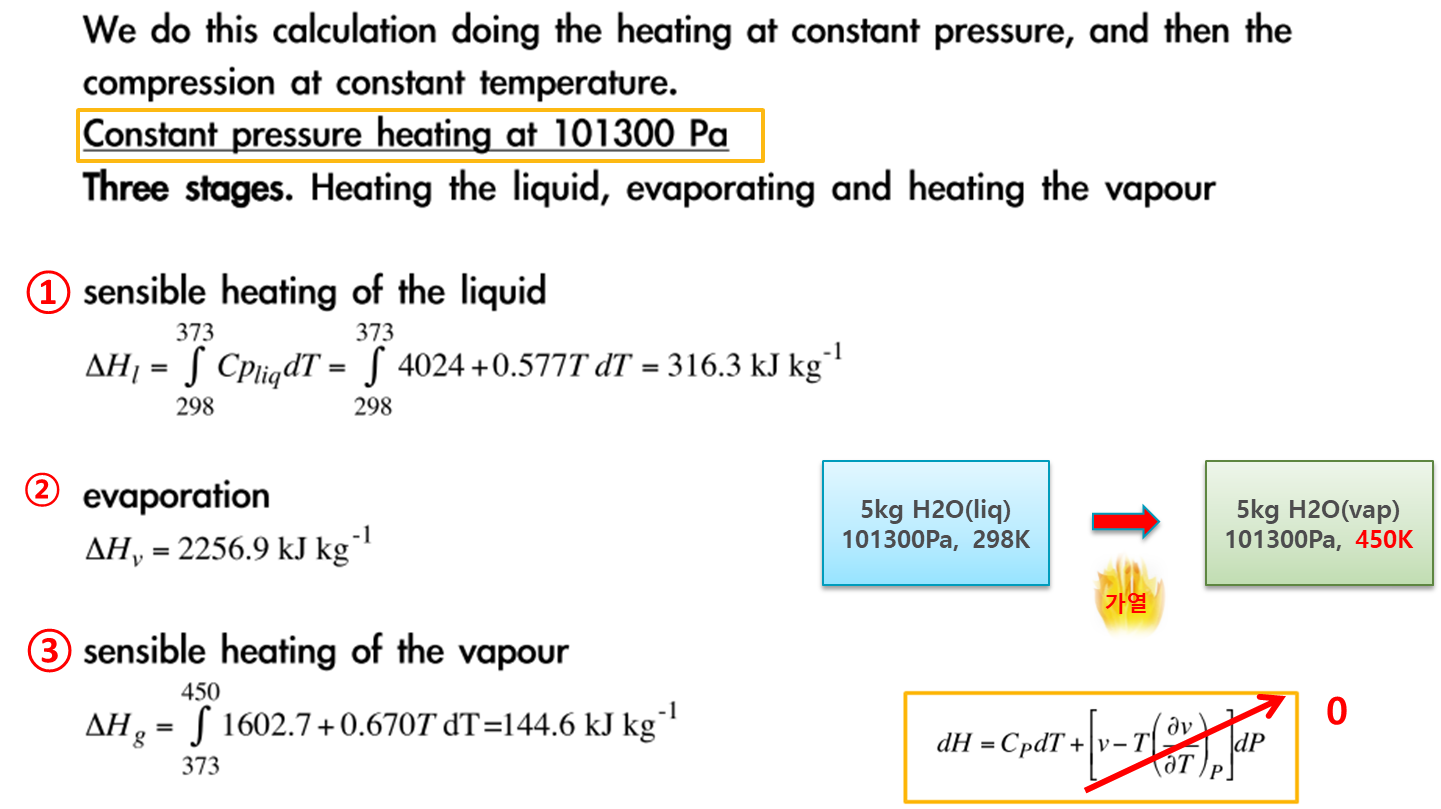 물을 ① 현열 가열(298K to 300K, 끓는점),