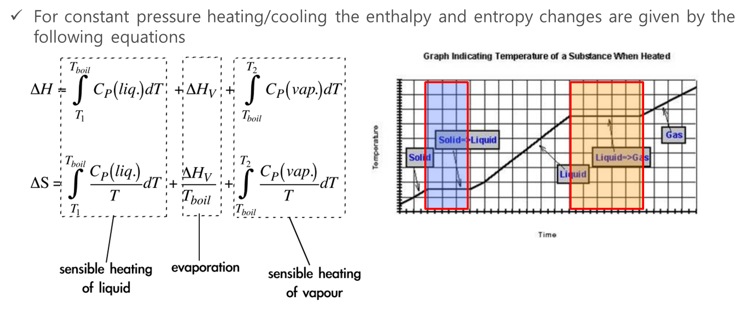 현열과 잠열 구간을 나누어 계산 후