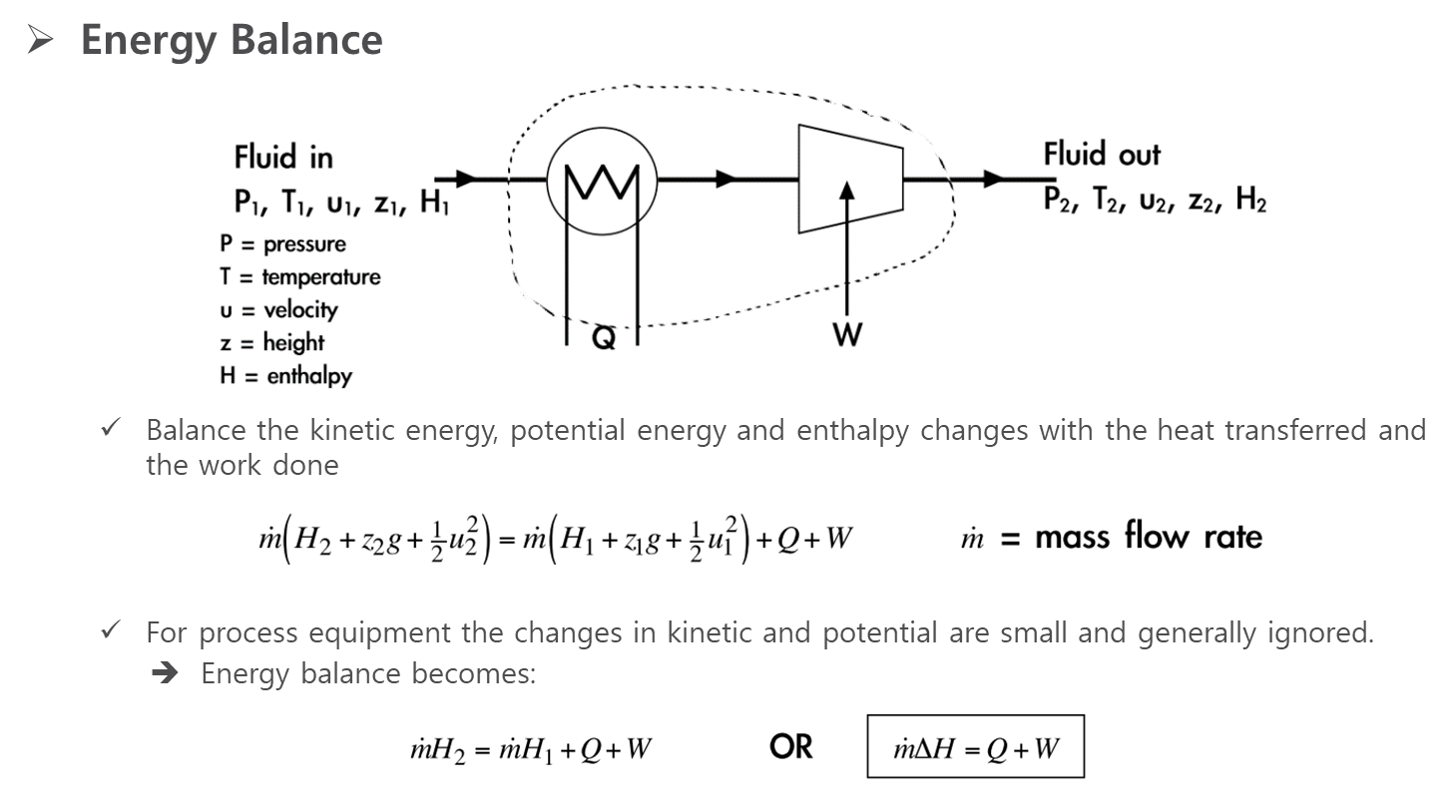 𝑄=𝑚 ̇△𝐻 (∴𝑊=0)